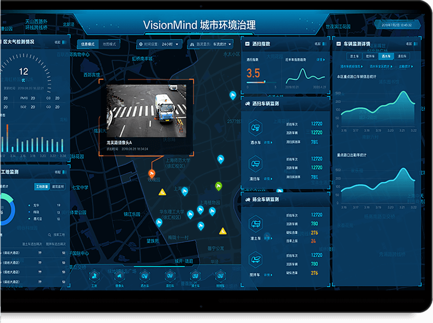 The VisionMind·Shijiexin urban environmental governance system is an intelligent analysis platform designed for construction site dust management and the operation of special vehicles. Based on urban traffic and construction site monitoring video streams, it can analyze illegal incidents of special vehicles in real time, automatically supervise the duty status and quality of cleaning vehicles, and form a dynamic supervision mechanism that combines traceability and governance, making urban environmental governance more effective.