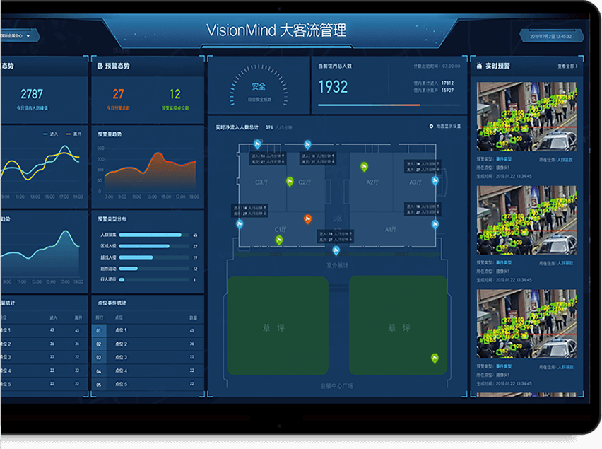 The VisionMind·Shijiexin crowd flow management system is an intelligent analysis platform designed for densely populated areas such as squares, business districts, scenic spots, and transportation hubs. It can accurately count the number of people and the crowd density in the area, identify and issue early warnings for more than ten types of abnormal events such as hanging banners, fighting, and crowd gatherings, meeting the needs of crowd flow evacuation management and safety protection in large-scale, high-density, and cross-regional urban areas.