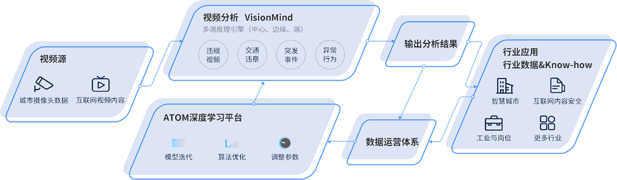 By using the VisionMind platform, we cooperate with numerous application developers and system integration partners in fields such as transportation, industry, construction, government affairs, environmental protection, and internet security to efficiently empower industries.